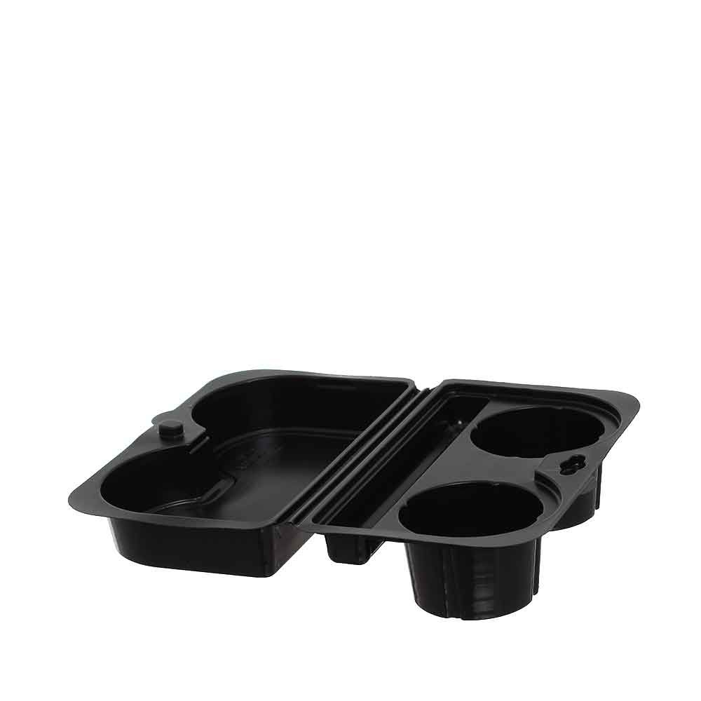 Vassoi porta bicchieri Koffepak richiudibili in plastica nera, con cavità per inserire 2 bicchieri da asporto e palette. Contenitori da... Per saperne di più