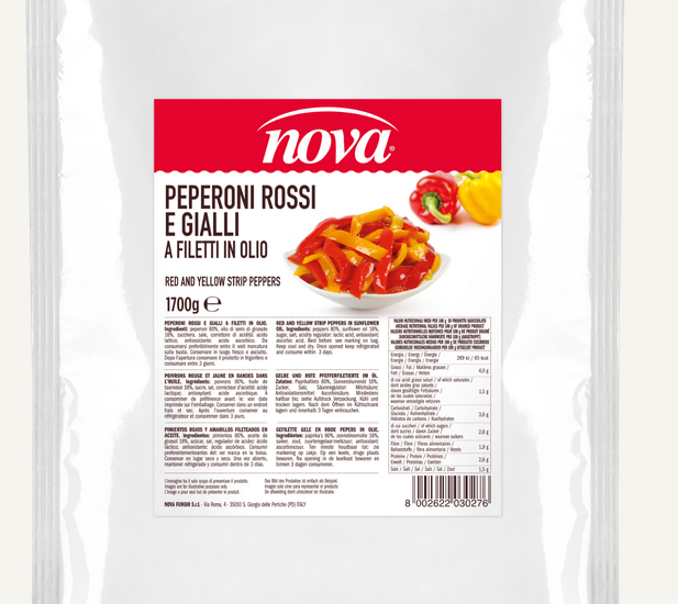 PEPERONI ROSSI E GIALLI A FILETTI IN OLIO BUSTA DA 1,700KG