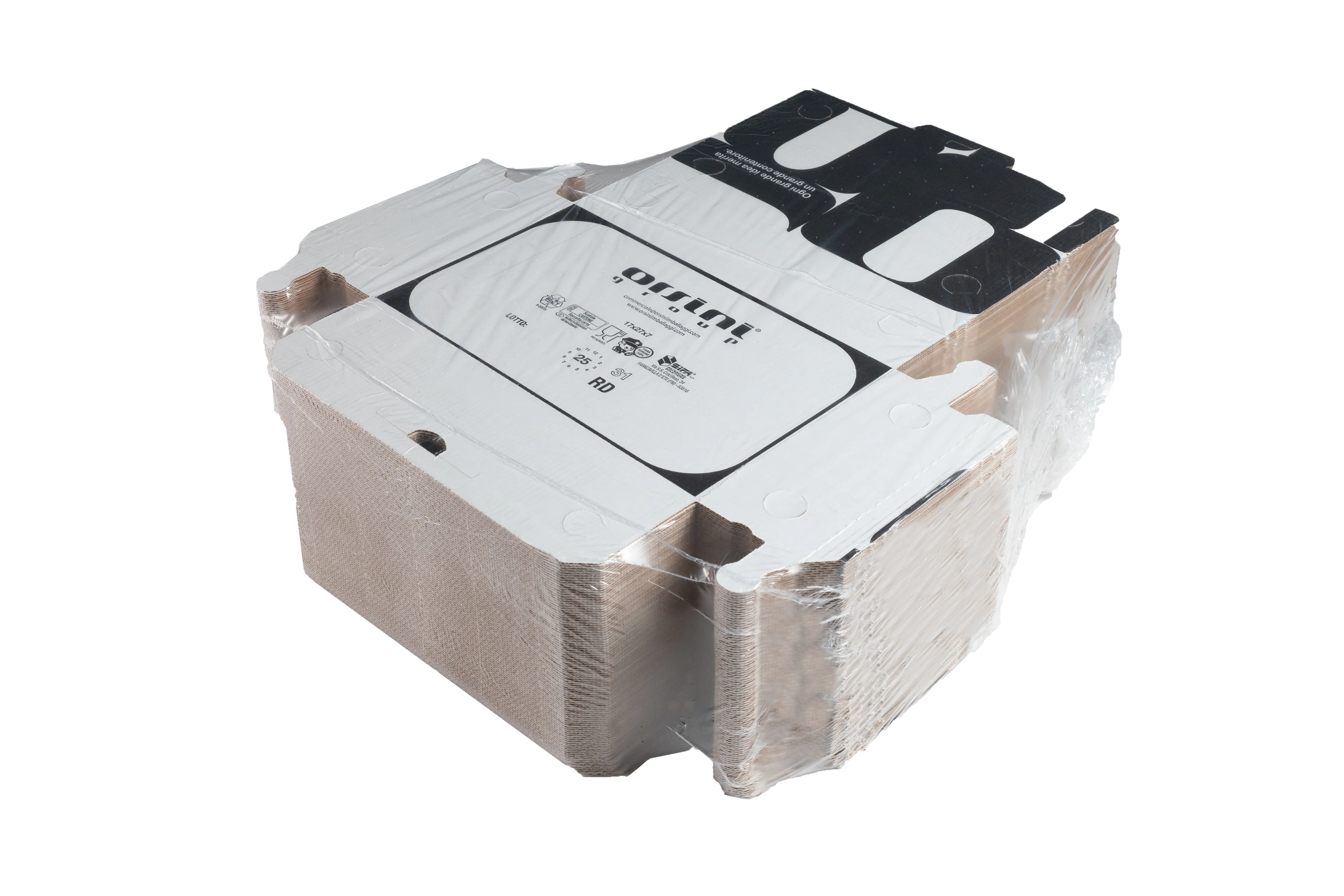 Scatola fritti 17x27x7 standard copertina bianca stampa nera - Confezione da 100 pezzi chiusa in termo - pedana da 5600... Per saperne di più