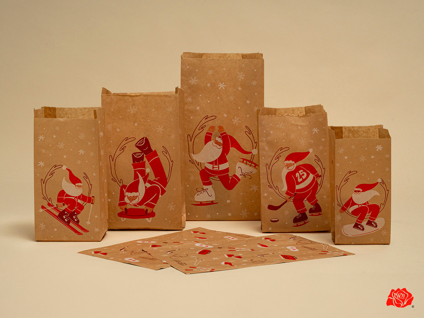 Sacchetti di carta kraft modello classico pane con stampa natalizia con babbo natale. Sacchetto modello classico sempre usato da alimentari,... Per saperne di più